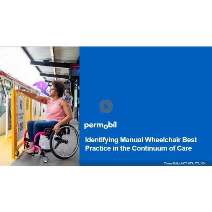 COURSE DESCRIPTION: Course 3 in the Permobil Seating and Mobility Fundamentals Series. Choosing the most appropriate manual wheelchair for each individual can be a daunting task, considering the variety of products available and the challenges of the health care system. Physical and occupational therapists working with...