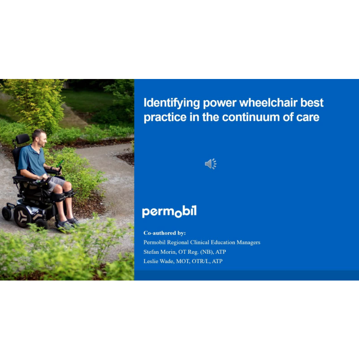 COURSE DESCRIPTION: Course 5 in the Permobil Seating and Mobility Fundamentals Series. Mobility options can be overwhelming, and it is important to understand when it is clinically appropriate to move to a power mobility device. Physical and occupational therapists working with clients who have mobility challenges must be familiar with different types of bases, power seat functions, and ...
